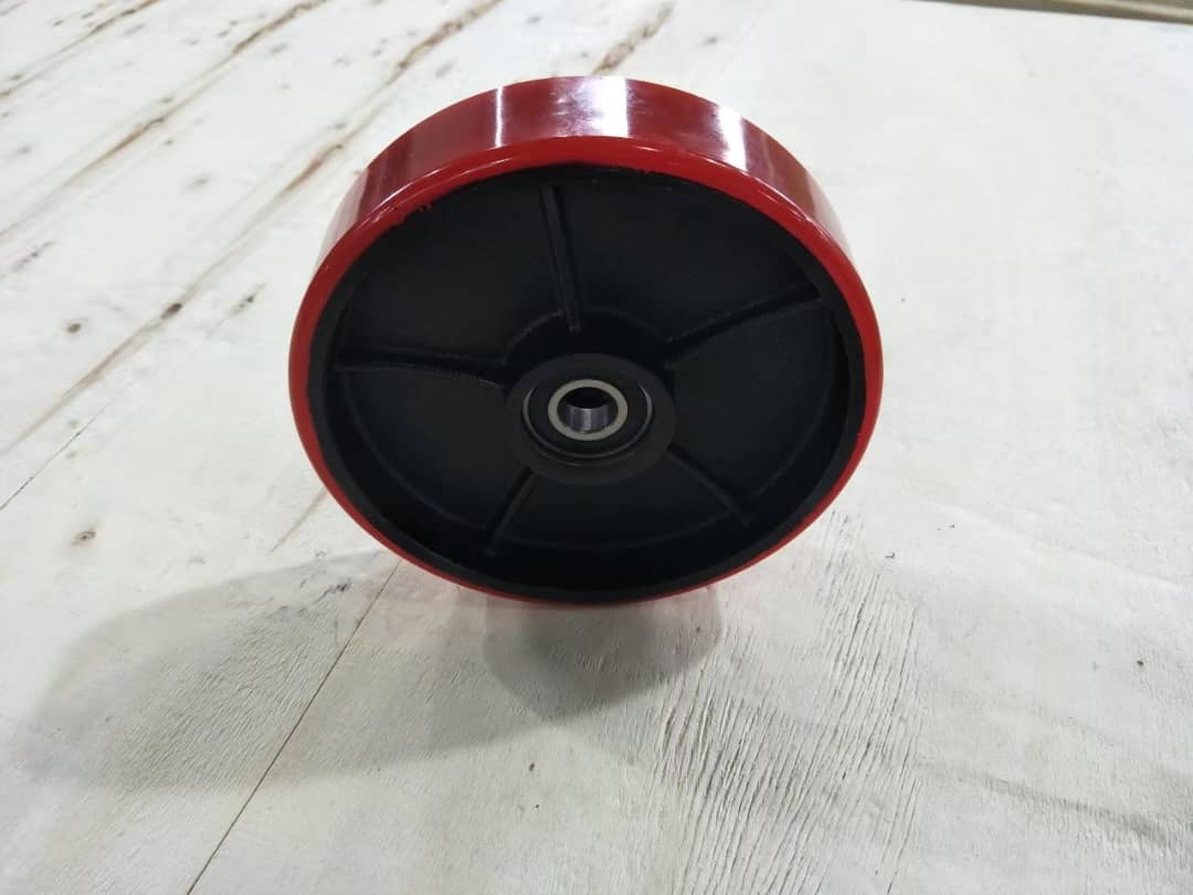 چرخ باکیفیت پلی اورتان قرمز در سایز 180 میلی متر با بهترین نوع بلبرینگ برند KG
