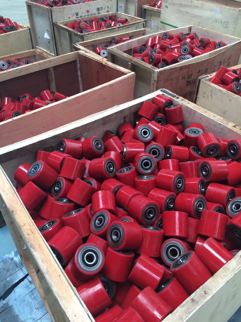 چرخ باکیفیت پلی اورتان قرمز در سایز 70*80 میلی متر با بهترین نوع بلبرینگ برند KG